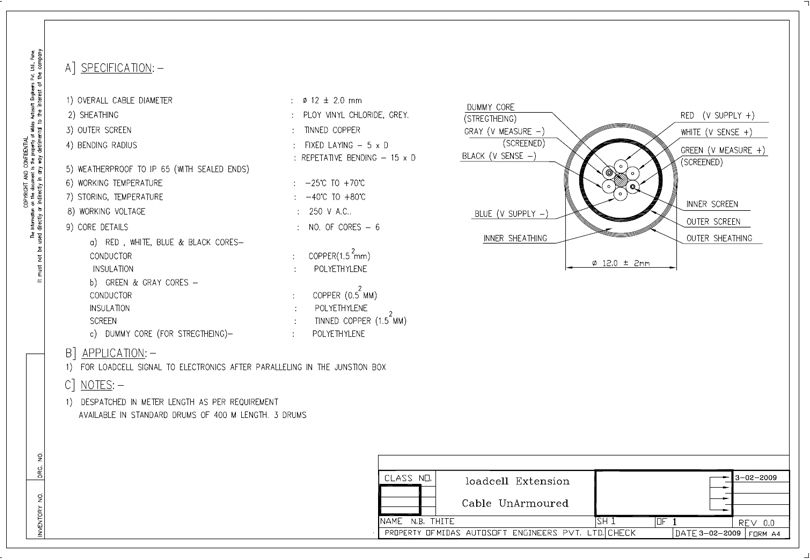 Load Cell Extension cable:We use to supply quality & branded 6 core, 0.75mmsq double screened (screening at measuring signal and outer of 6 cores) load cell extension cable from Junction Box to Weighing monitor with our weighing system.